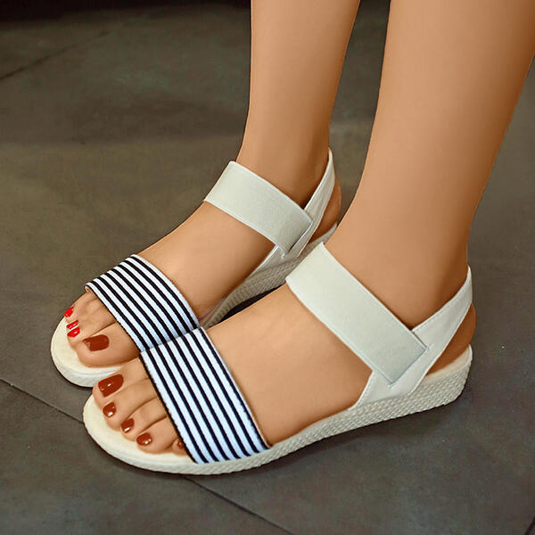 NEWS! Women PU Wedge Heel Wedge Sandals Peep Toe with Striped Bandage Shoes