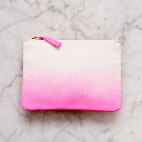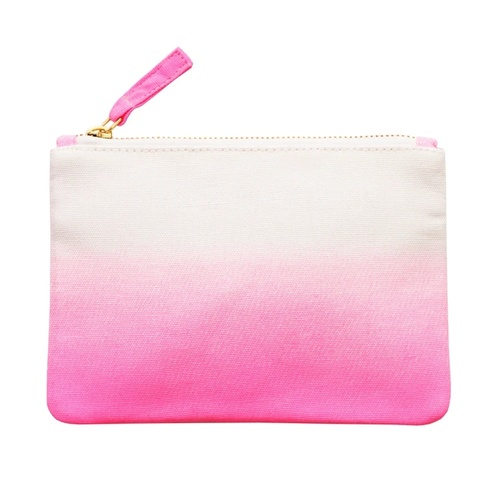 White canvas and hot pink ombré zip pouch.