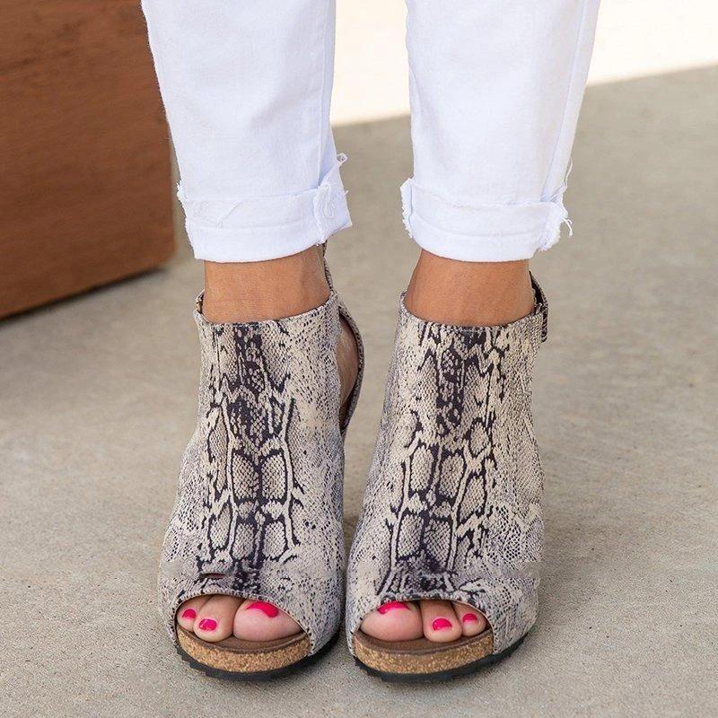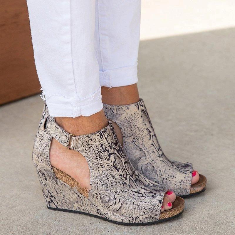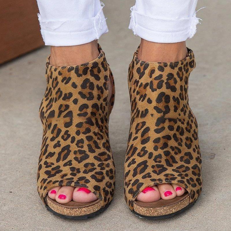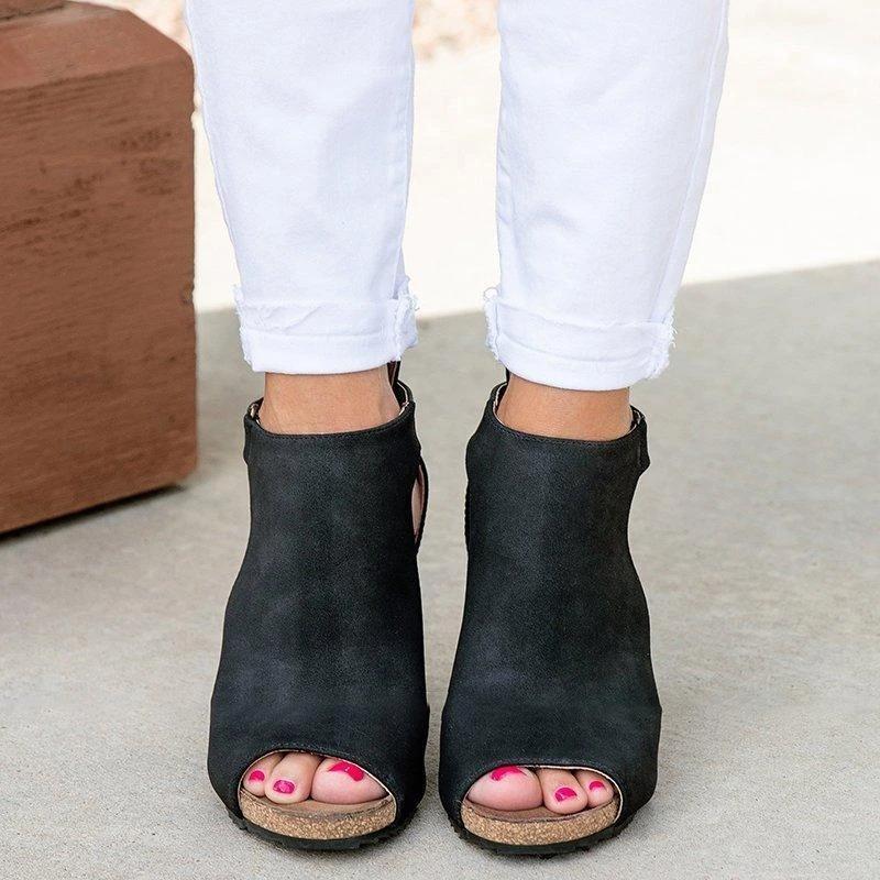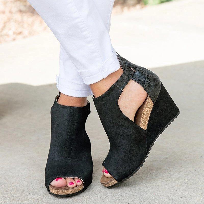 Peep Toe Blocking Hook-Loop Wedges Sandals