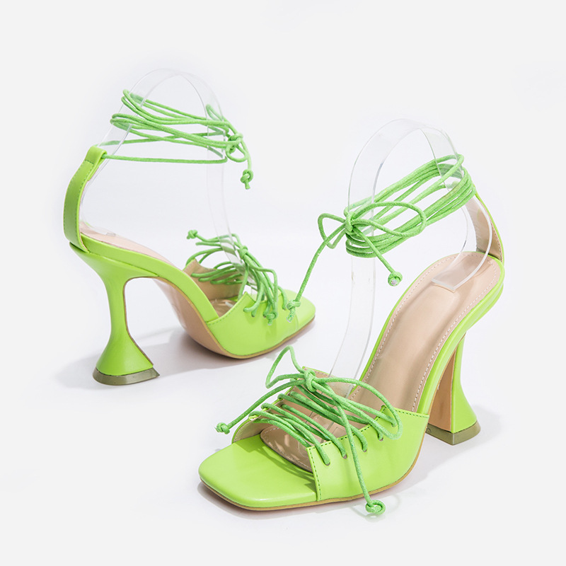 Peep Toe Lace-up Chunky Heeled Sandals