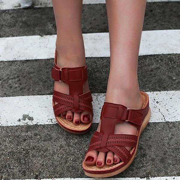 Handmade Stitching Comfortable Open Toe Casual Wedges Sandals