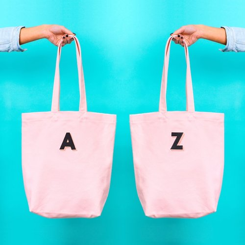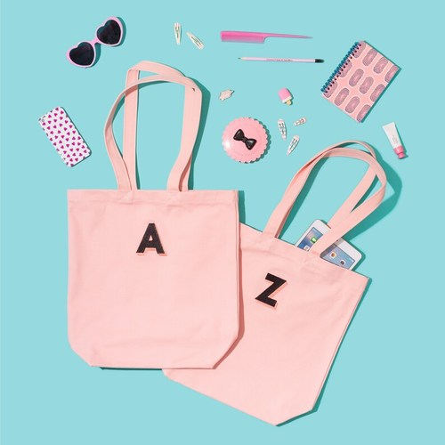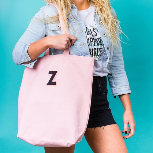 Available in every lovely letter of the alphabet on our sturdy blush pink canvas.