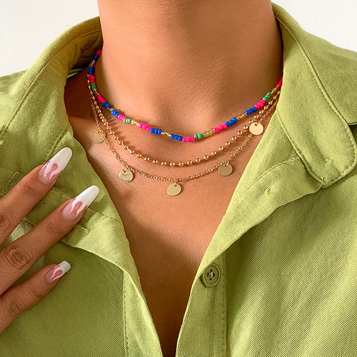 Personality Hit Color Rice Bead Clavicle Chain