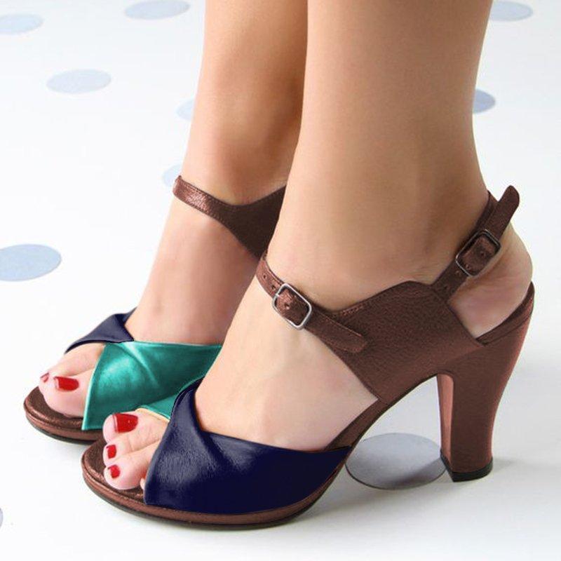 PLUS SIZE COLOR BLOCK CHUNKY HEEL TWISTED SANDALS