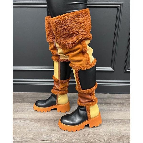 Plush Stitching Vegan Leather Over The Knee Boots
