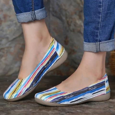Floral Print Color Matching Soft Comfortable Slip On Flat Shoes