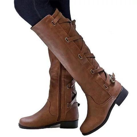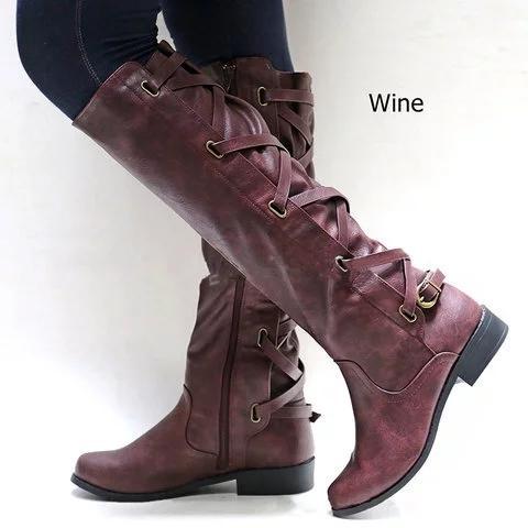 Womens Western Cowboy Knee Boots Riding Punk Buckle Boots