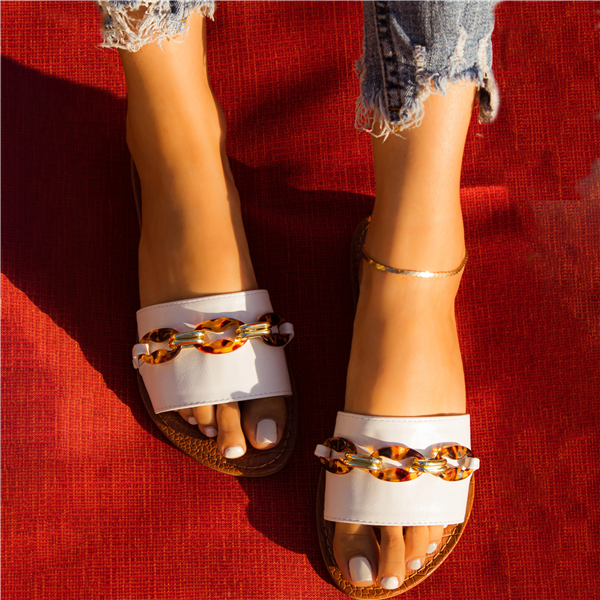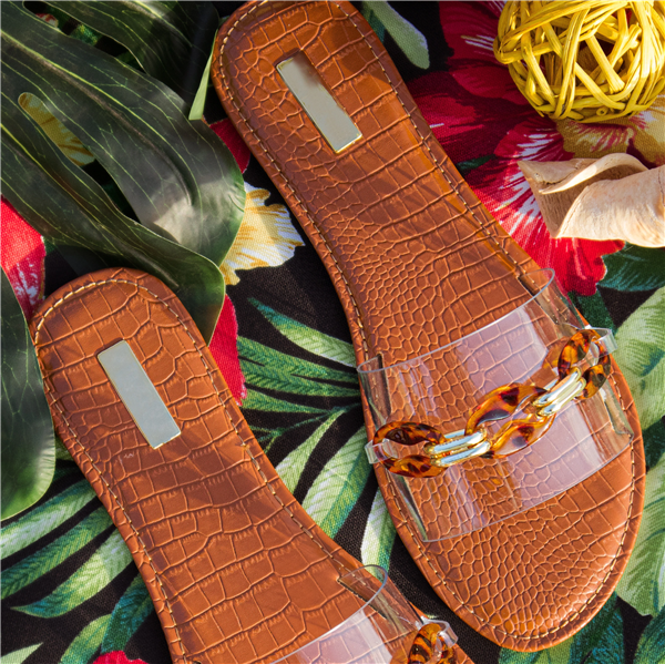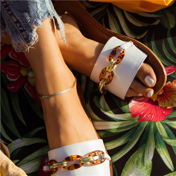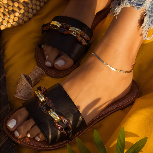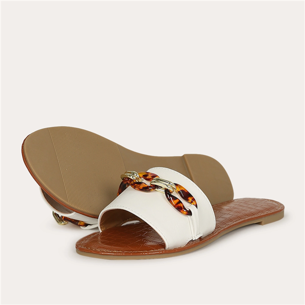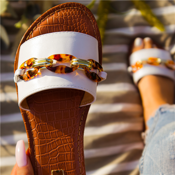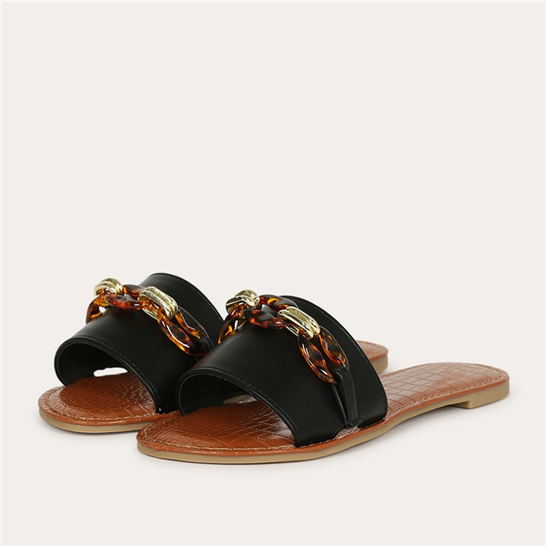 Qupid Tortoise Chain Slip On Slide Sandal