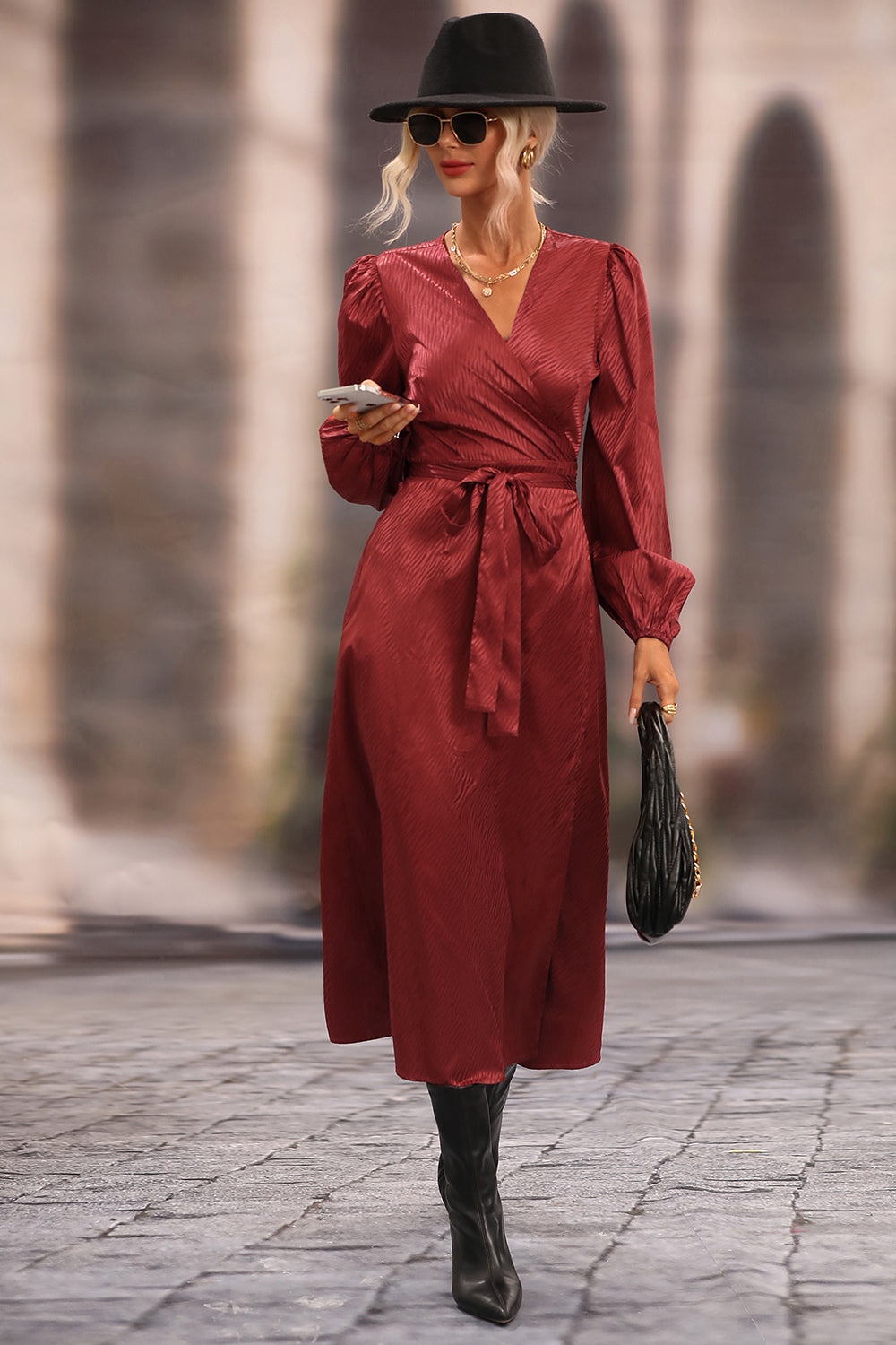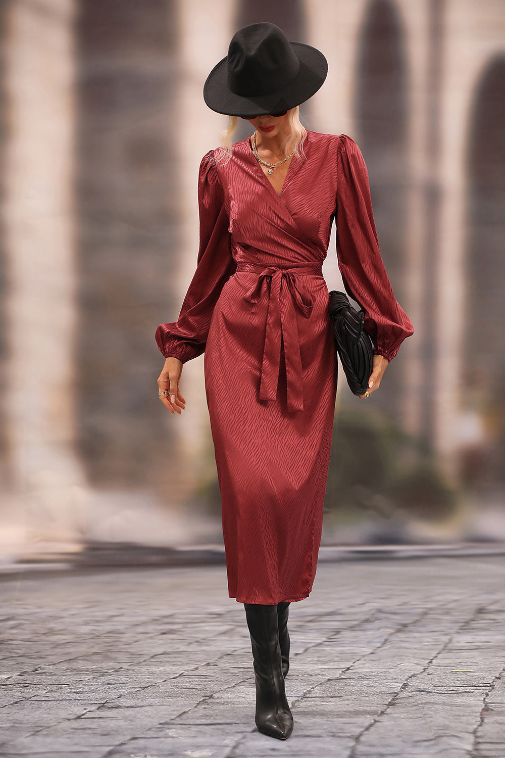 Red Long Sleeved Long Skirt