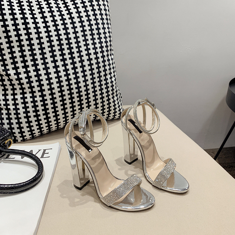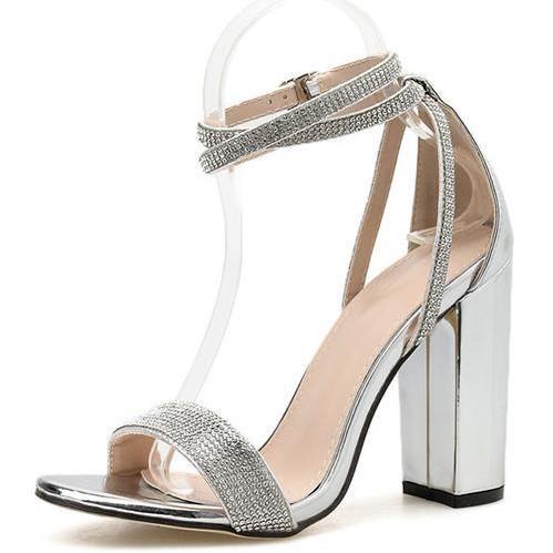 Rhinestone Chunky Heel Sandals