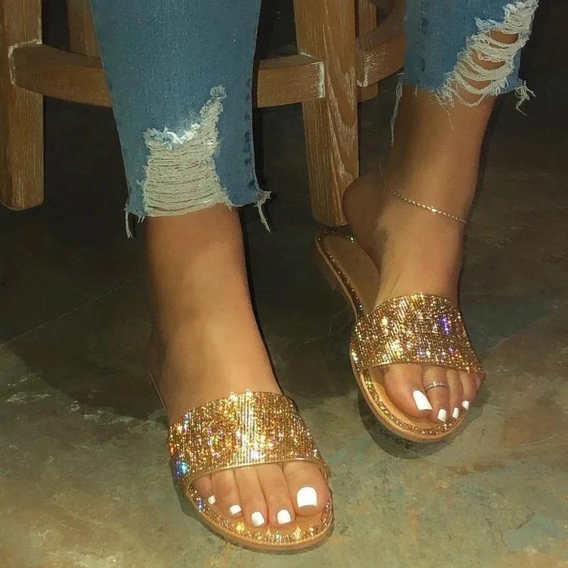 Rhinestone Flat With Slip-On Flip Flop Slippers
