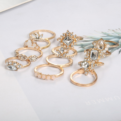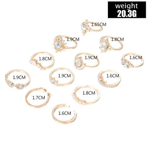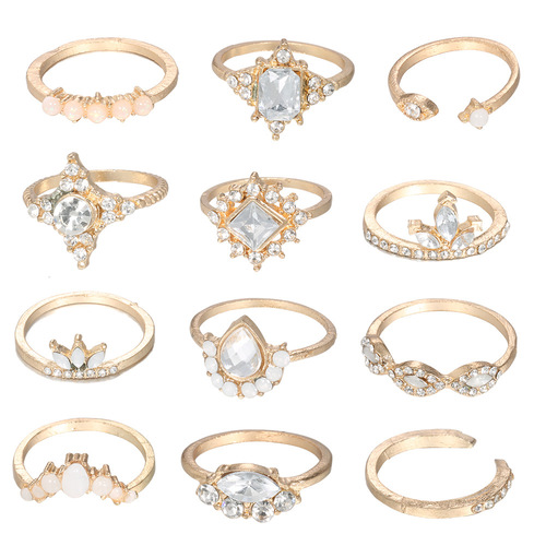 Rhinestone Inlaid Ring 12PCS Ring Set