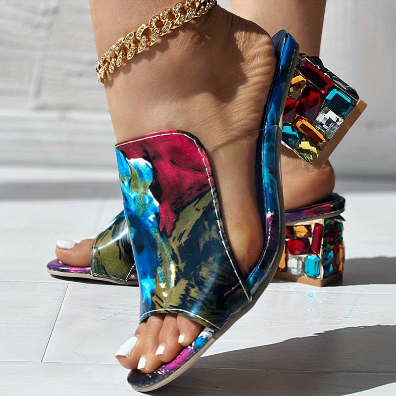 Rhinestone Peep Toe Sandals: Women's Slip-On Low Heel Shoes