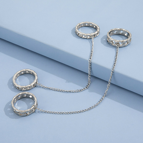 Ring Chain Pendant Retro Punk 2PCS Ring Set