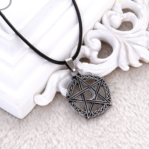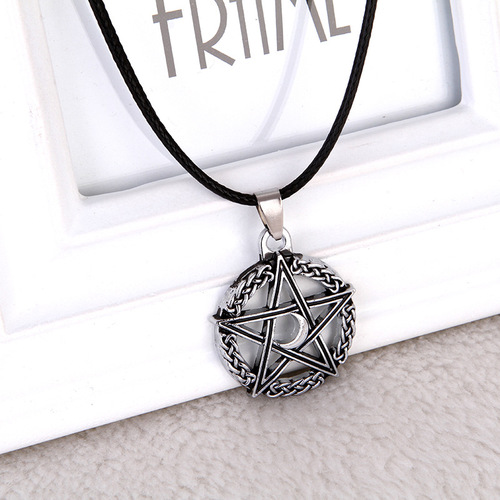 Rope Braid Pentagram Moon Pendant Couple Necklace