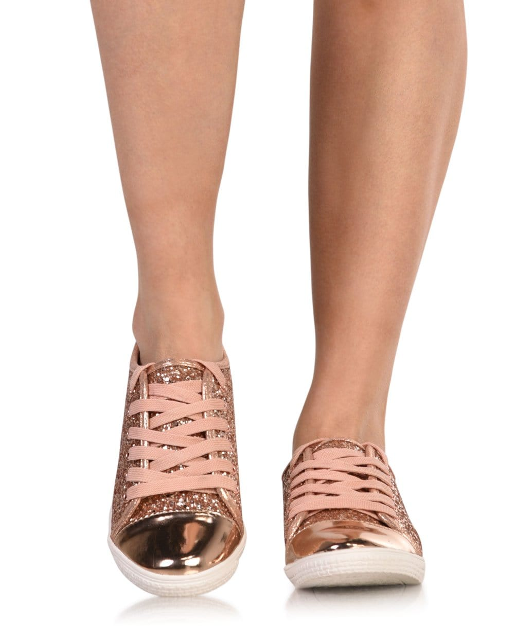 Keep sparkling everywhere you go in our Shinin' All the Time Glitter Sneakers. These ultra shiny tennis shoes have a glitter body, metallic tie with matching laces. Offered in Rose Gold, White, and Silver.
