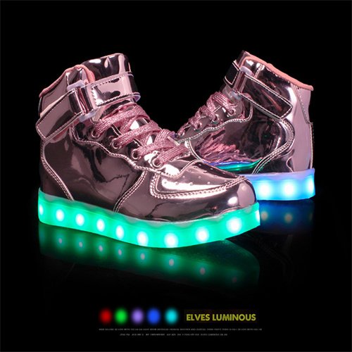 ????[Size for women] LED Light Up Sneakers High Top Hook and Loop Flashing Shoes for Boys Girls