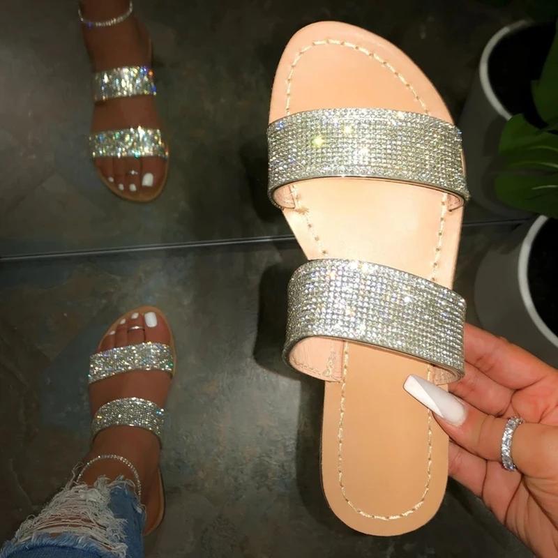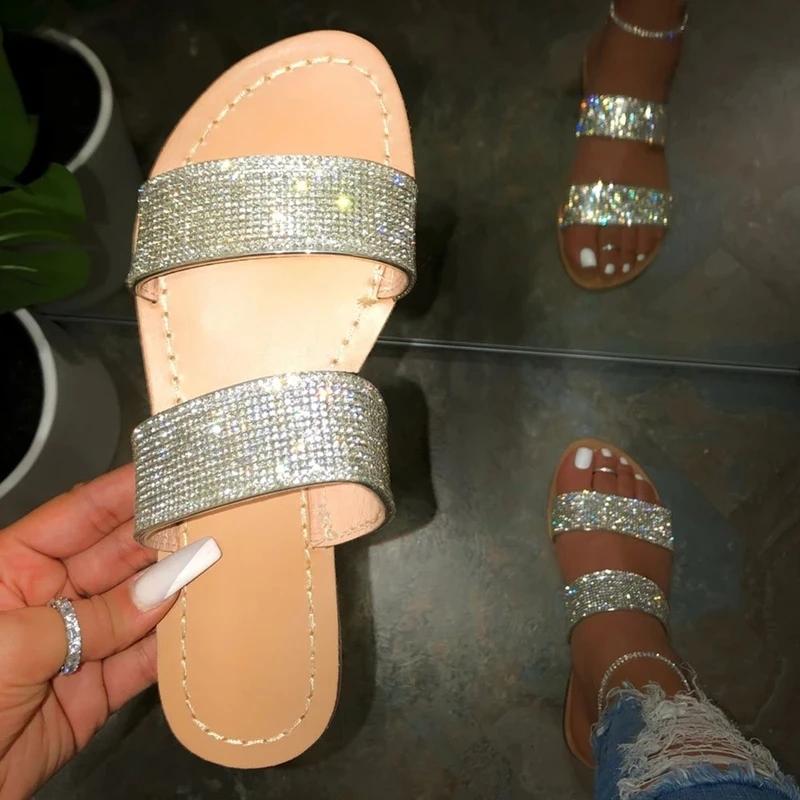 Slip-On Flip Flop Flat With Rhinestone Rubber Plain Slippers