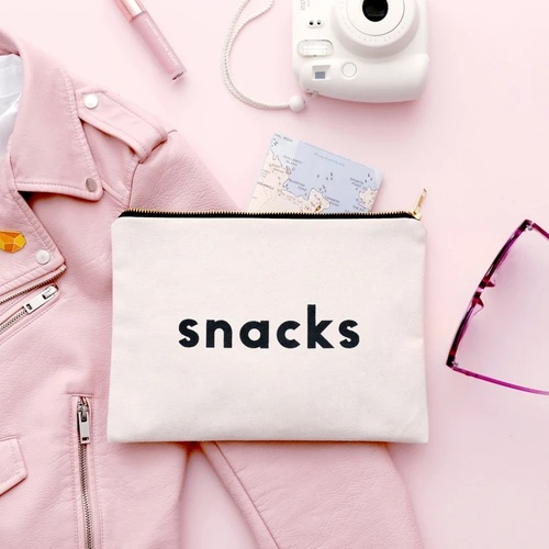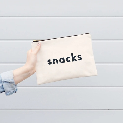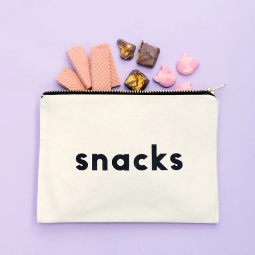 Snacks Canvas Bag - Slogan Canvas Bag - Zipped Pencil Case - Snacks Canvas Pouch - Alphabet Bags