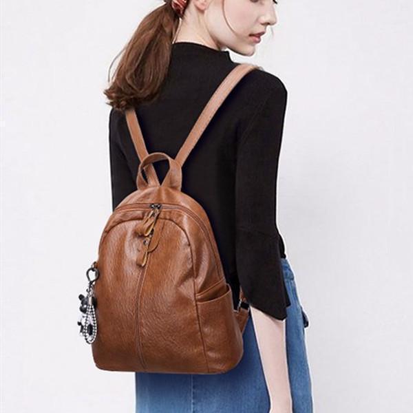 Soft Pu Leather Backpack Travel Large Capacity Shoulder Bag