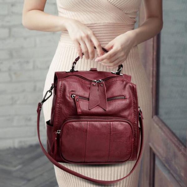 Soft PU Leather Multi-function Handbag Large Capacity Backpack
