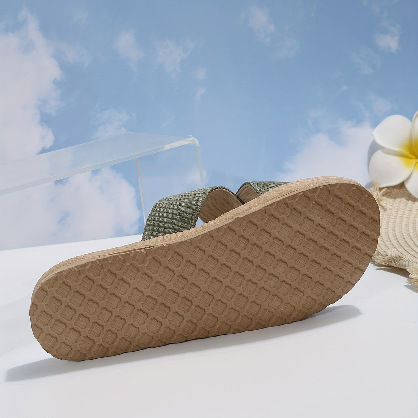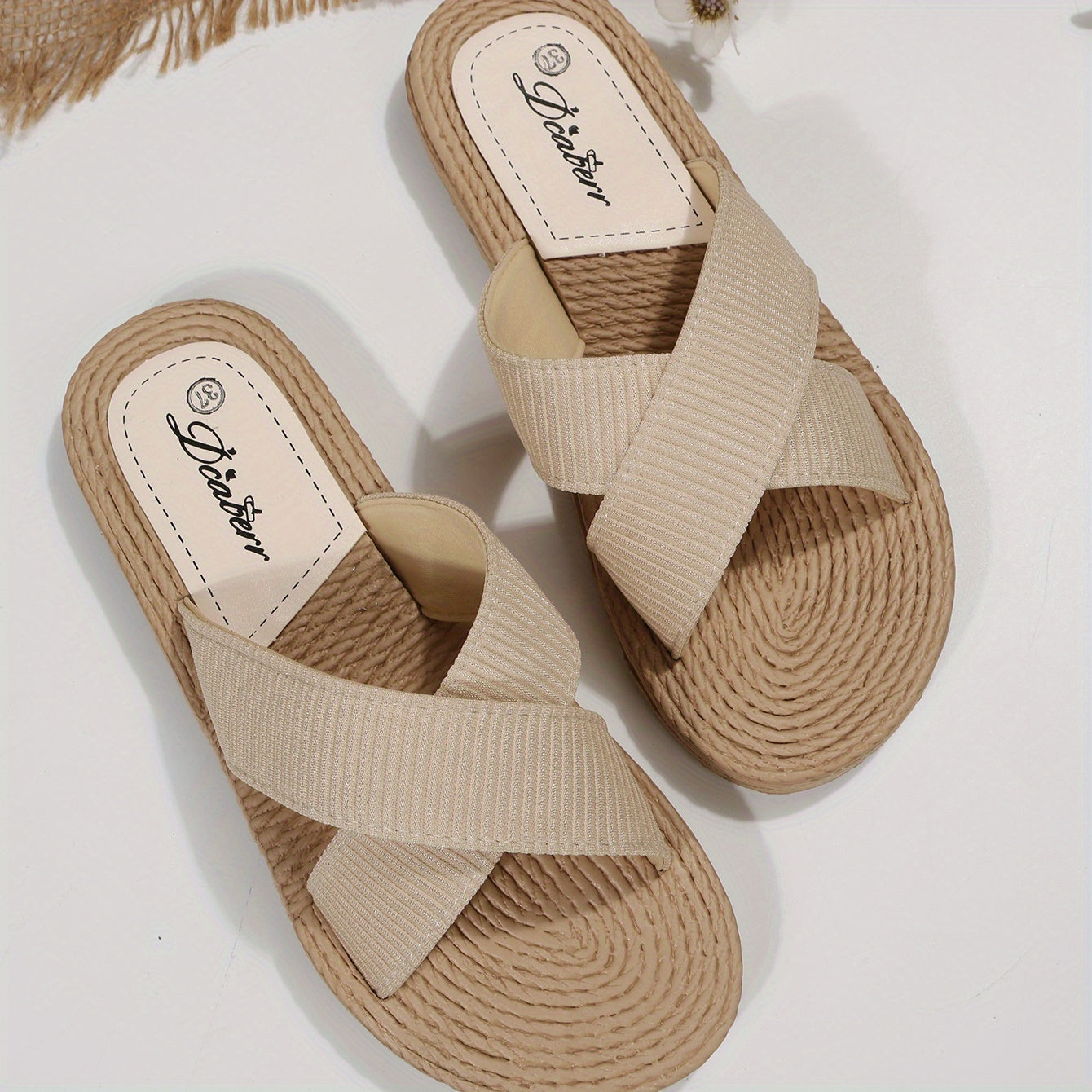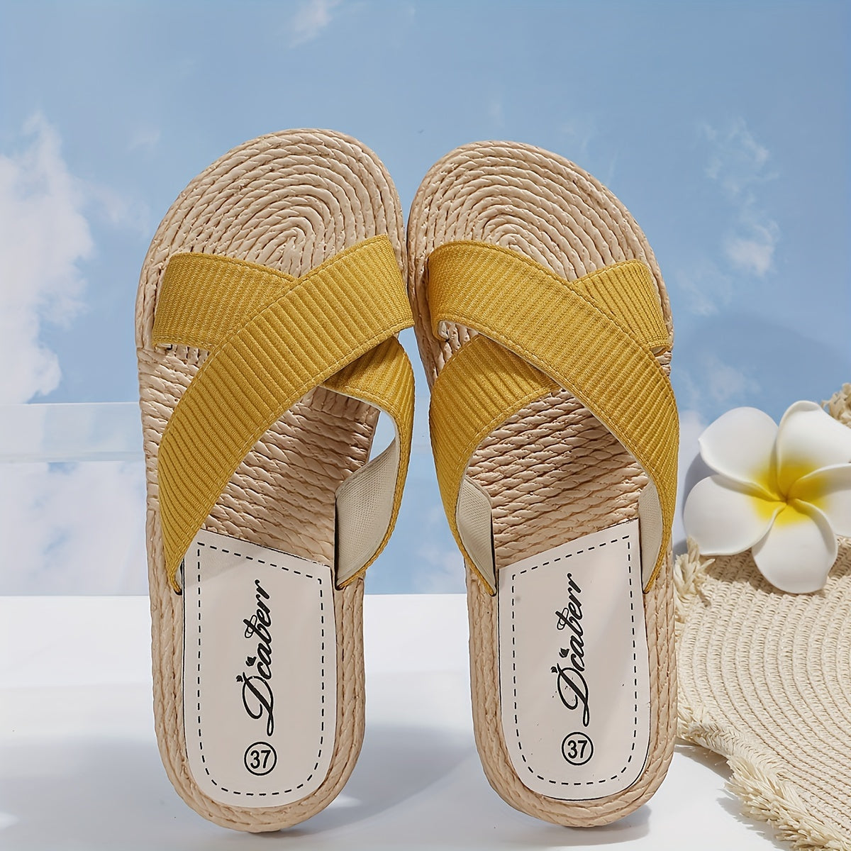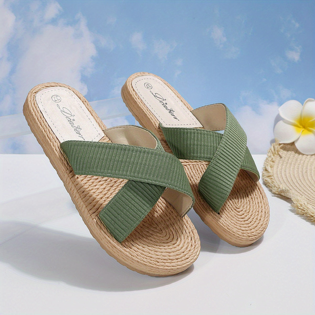 Solid Color Beach Slides - Women's Cross Strap Flats with Espadrille Sole