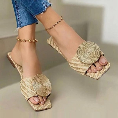 Sparkling Rhinestone Chunky Heels: Slip-On Strappy Sandals
