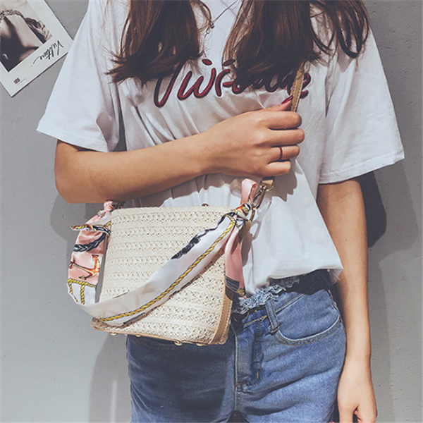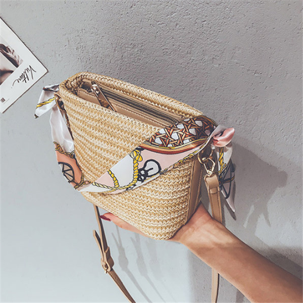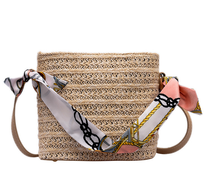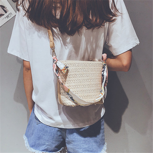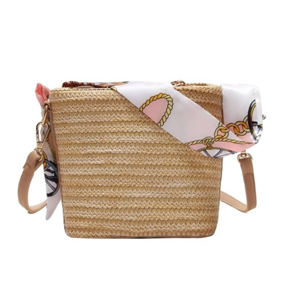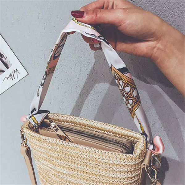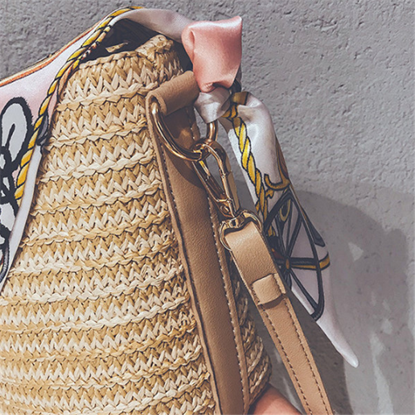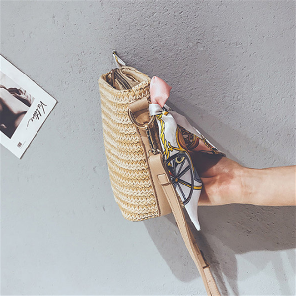 Straw Scarf Bucket Bag Crossbody Bag For Women