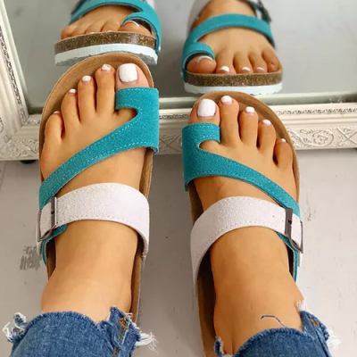 2020 New And Fashional Woman Sofiawears Studded Toe Post Flat Slipper Sandals