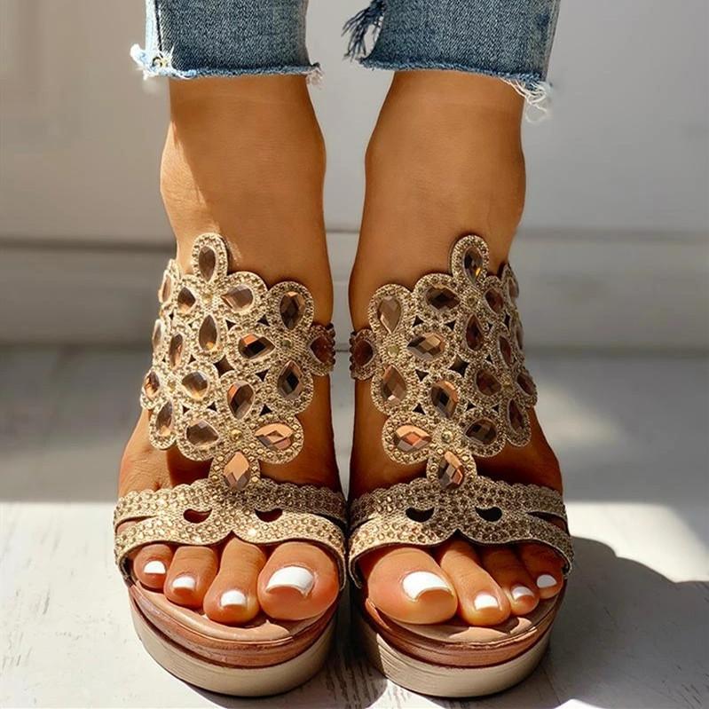 Studded Platform Wedge Casual Slingback Sandals