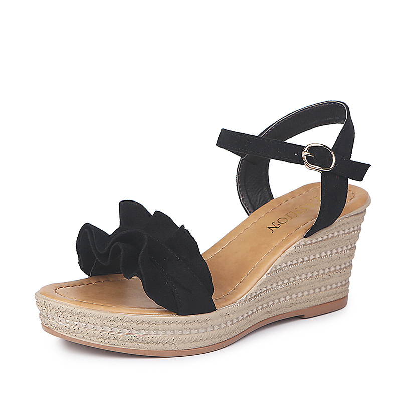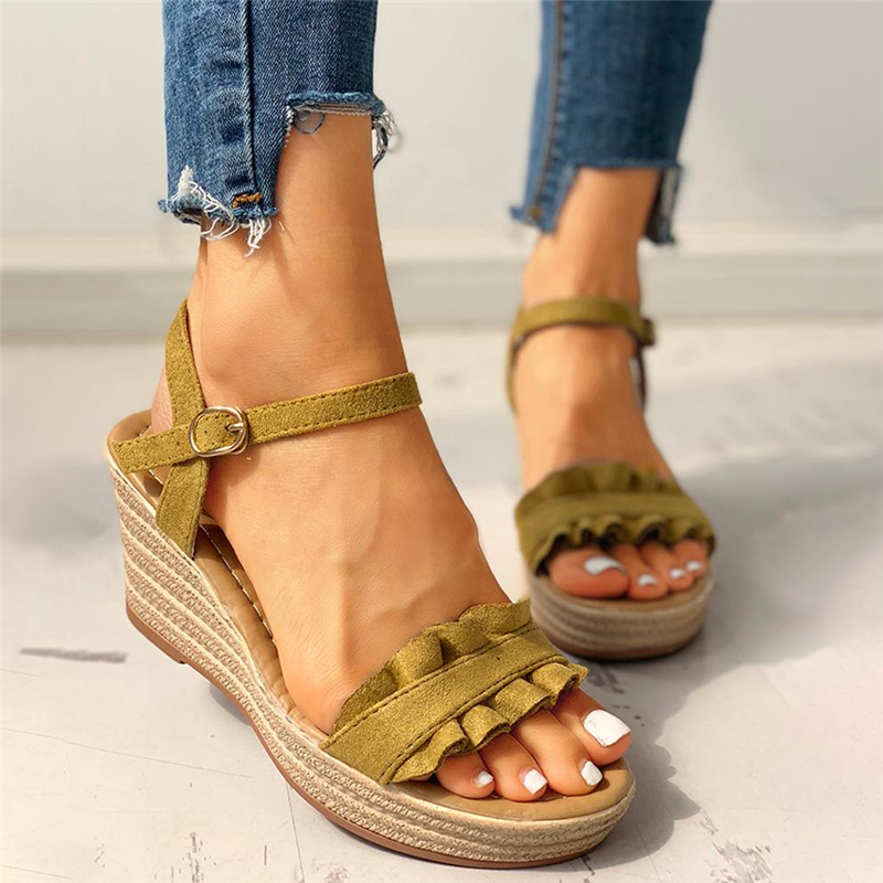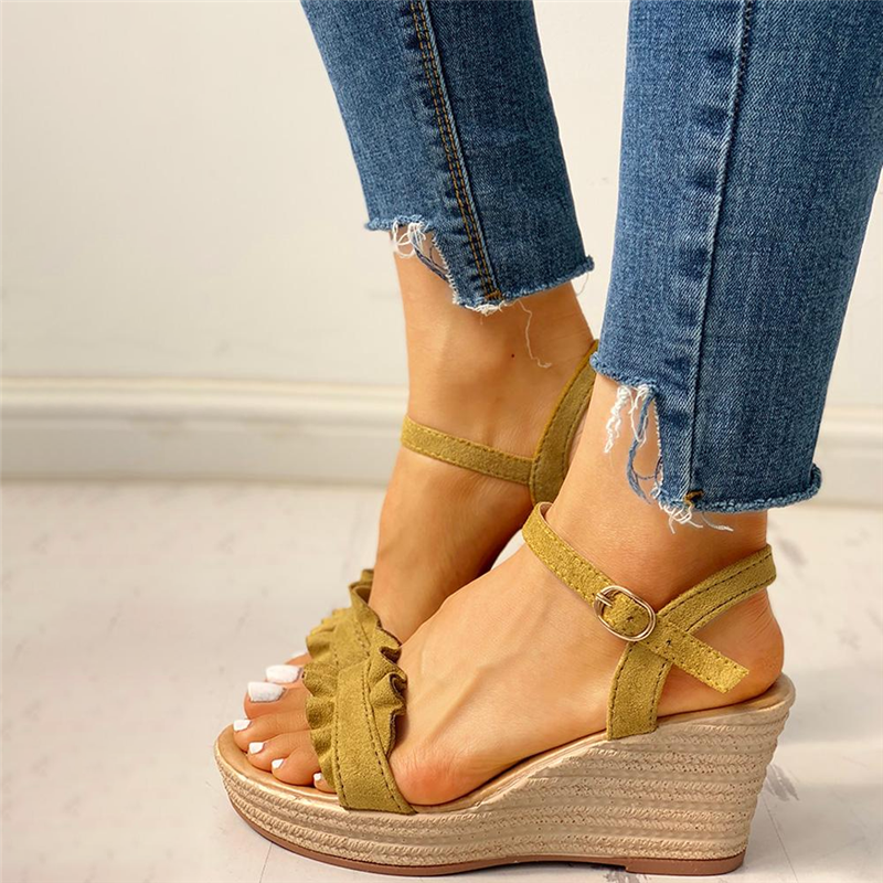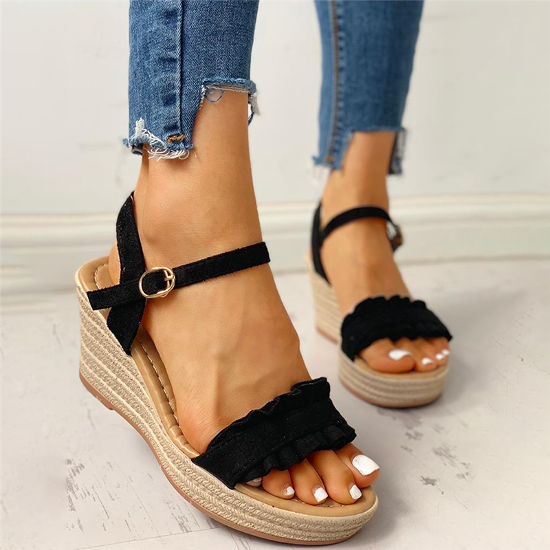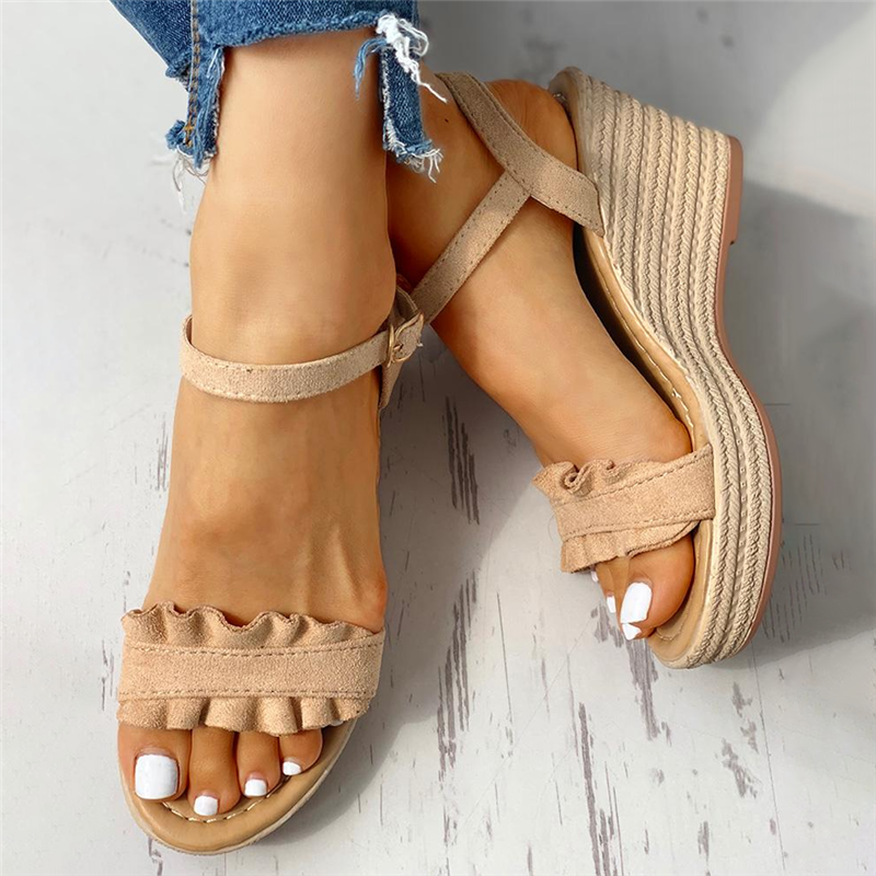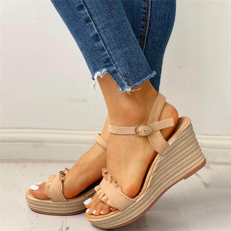 Suede Frill Hem Espadrille Wedge Sandals