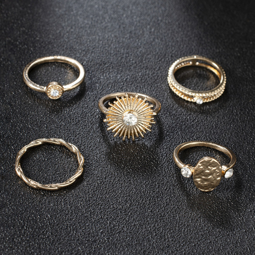 Sun Geometric Pattern 4PCS Ring Set