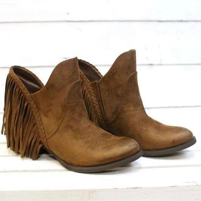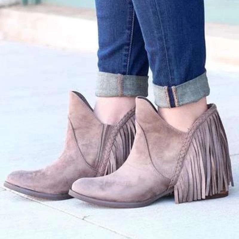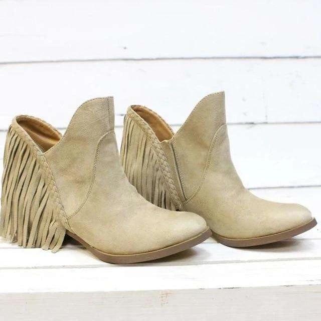 Tassel Faux Suede Leather Ankle Boots