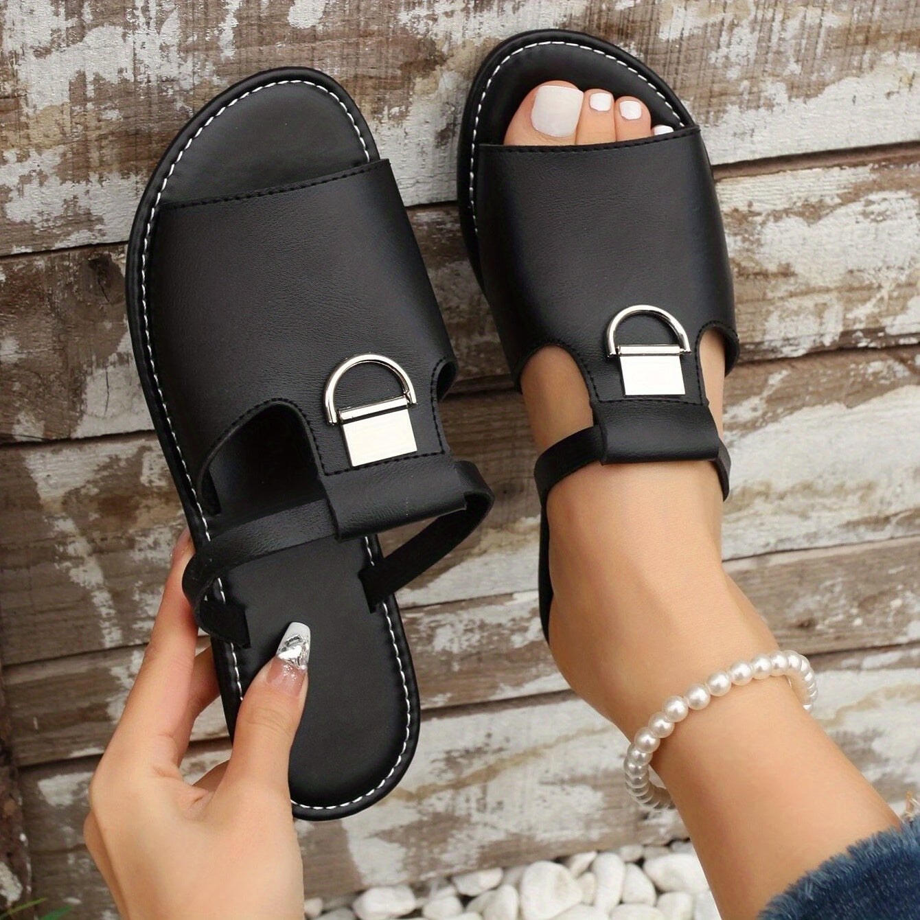 Trendy Open Toe Flat Sandals for Women - Non-Slip Beach Slides