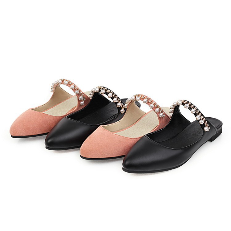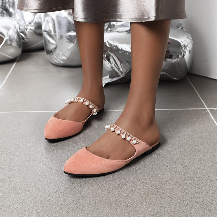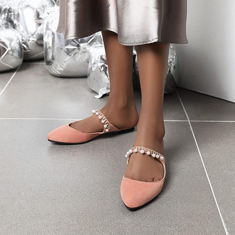 Trendy Rhinestone Beads Slip-On Plain Slippers
