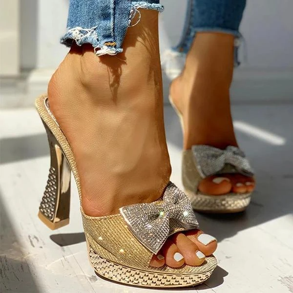 Variedshoes Women Fashion Paillette Rhinestone Slip-on Sandals