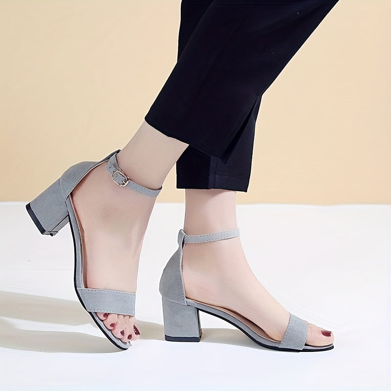 Versatile Women's Ankle Strap Sandals - Low Block Heel, Solid Color, Open Toe