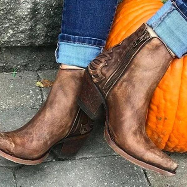 *Women Fashion Lace Ankle Boots Chunky Heel Daily Zipper Booties