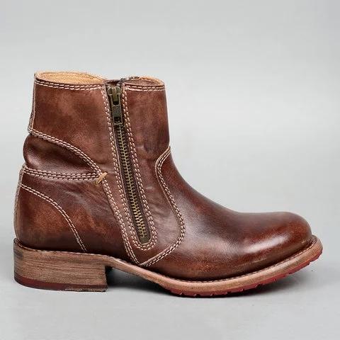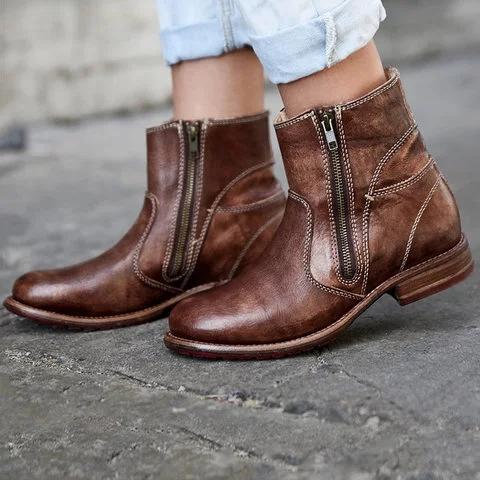 Vintage Double Zipper Women Booties Pu Zipper Low Heel Boots