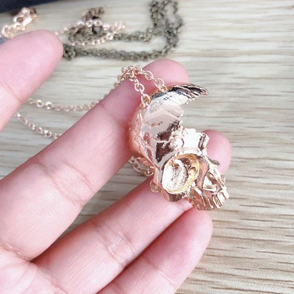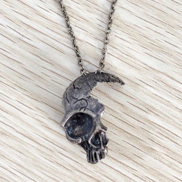 Vintage Half Skull Pendant Necklace Alloy Skull Pendant Gothic Necklace