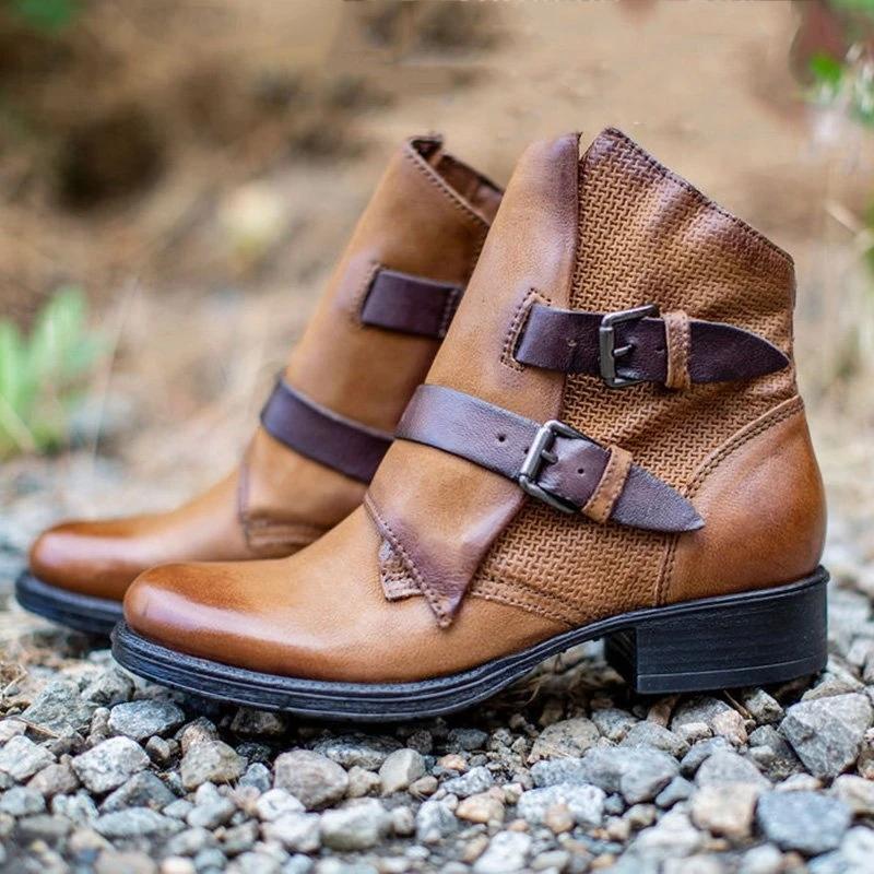 Vintage Leather Zipper Ankle Booties