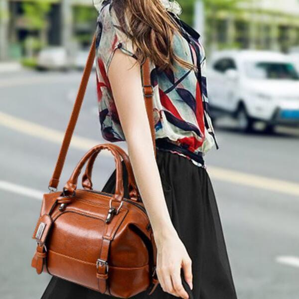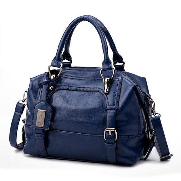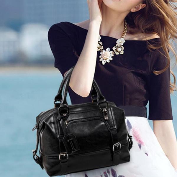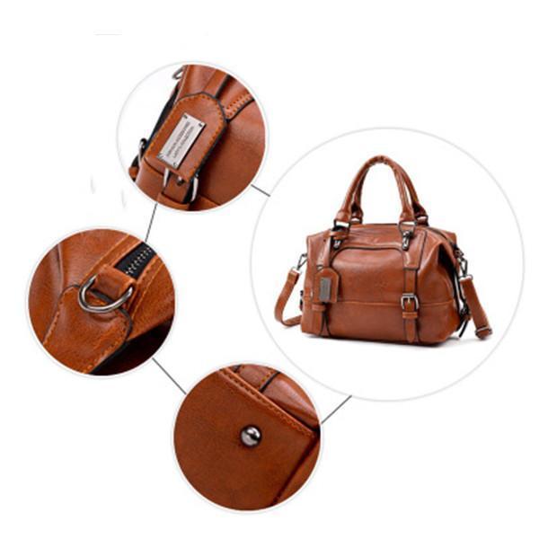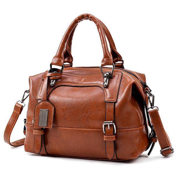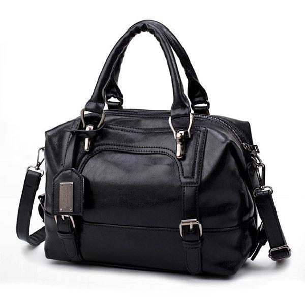 Vintage PU Leather Boston Handbag Shoulder Bag