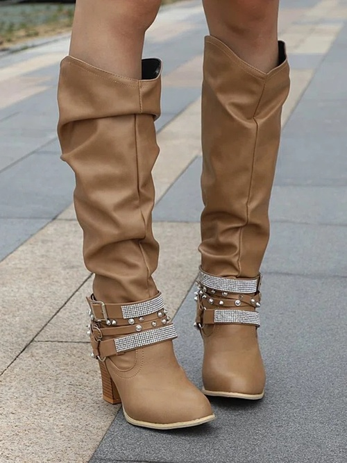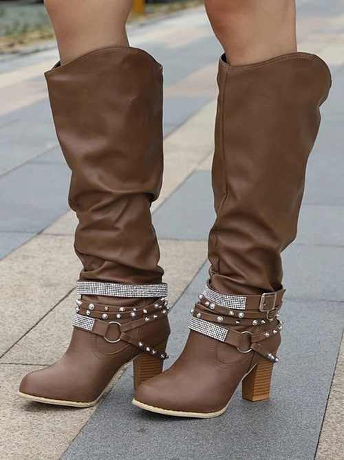 Vintage Rhinestone Rivet Belt Buckle Knight Boots