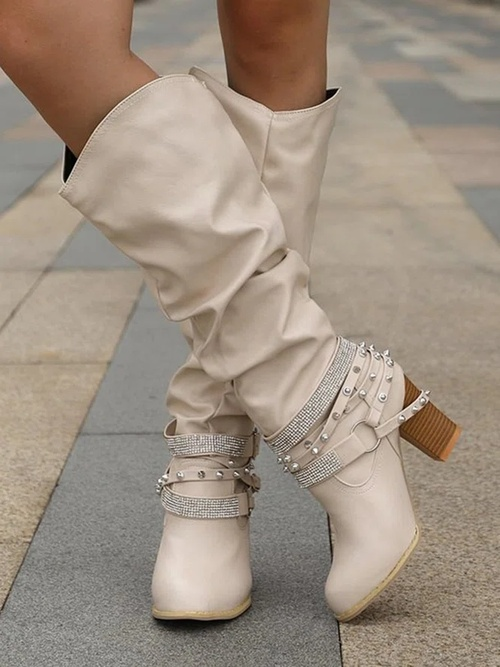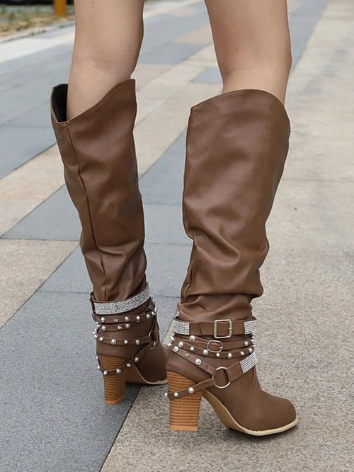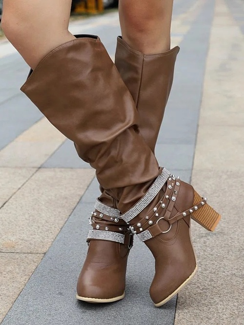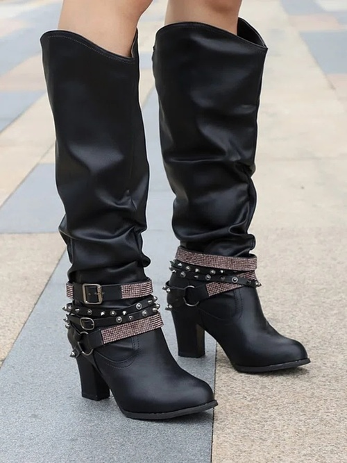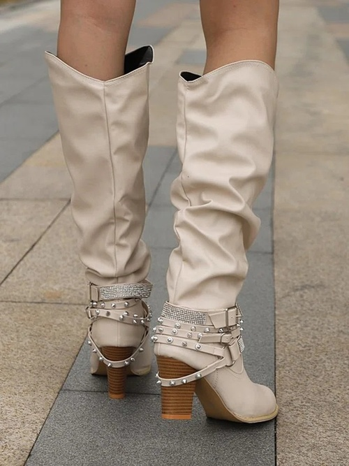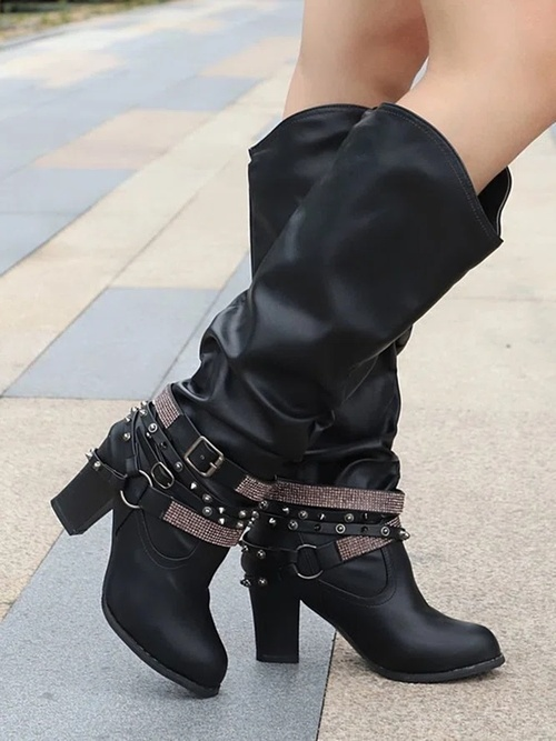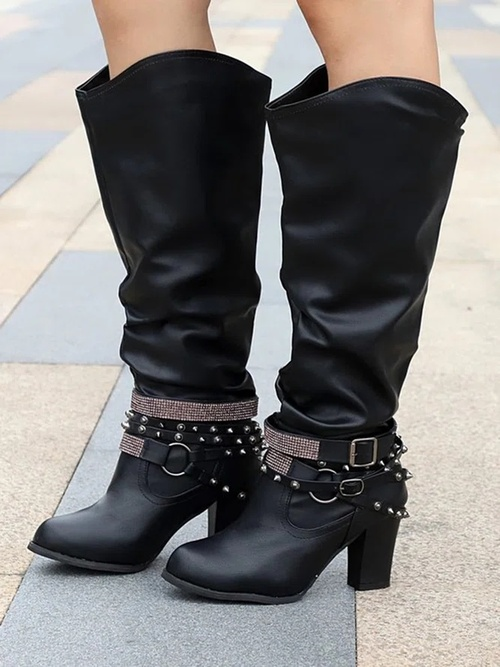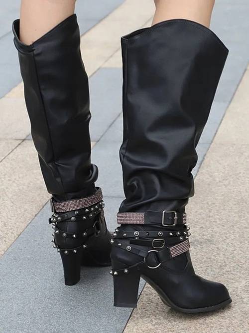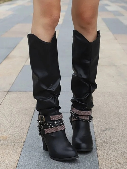 Vintage Rhinestone Rivet Belt Buckle Knight Boots