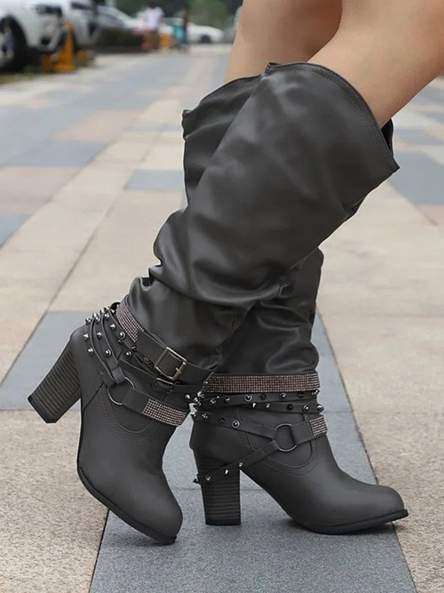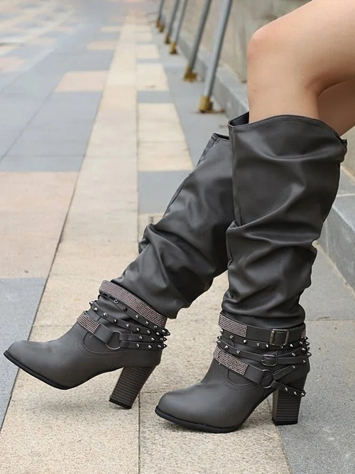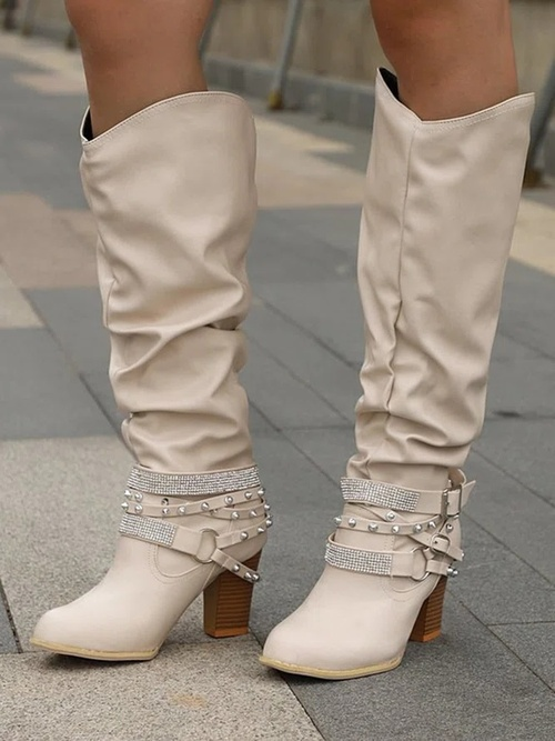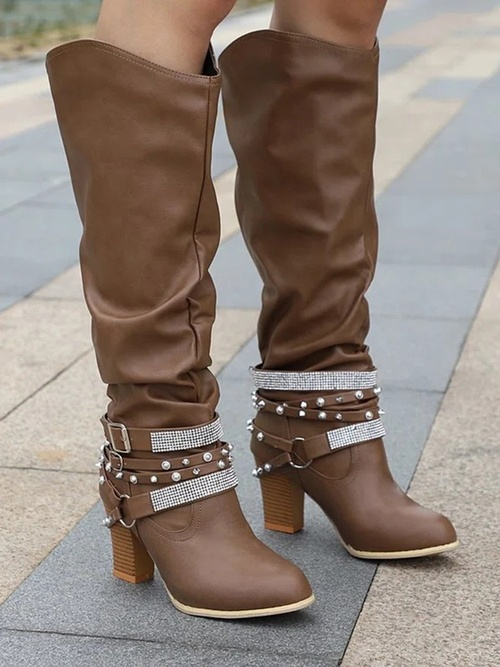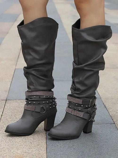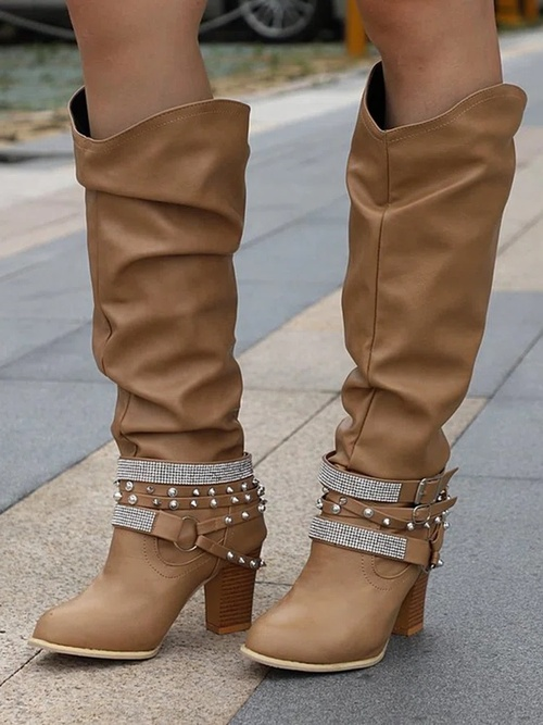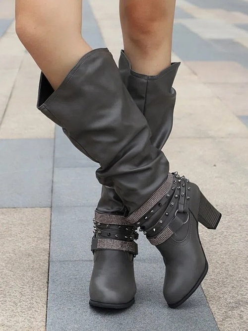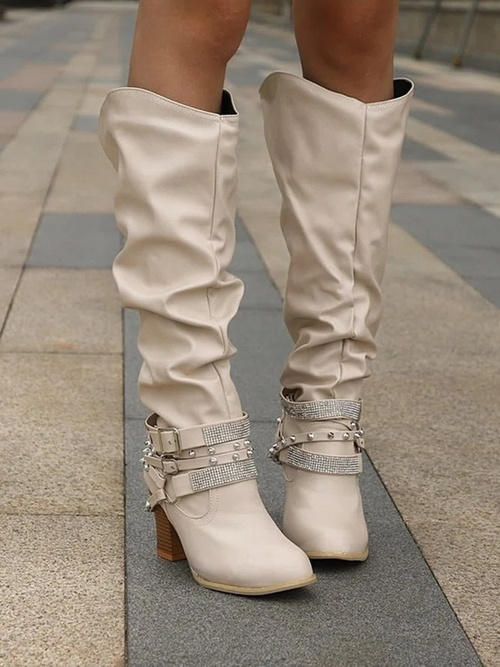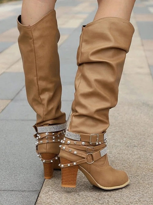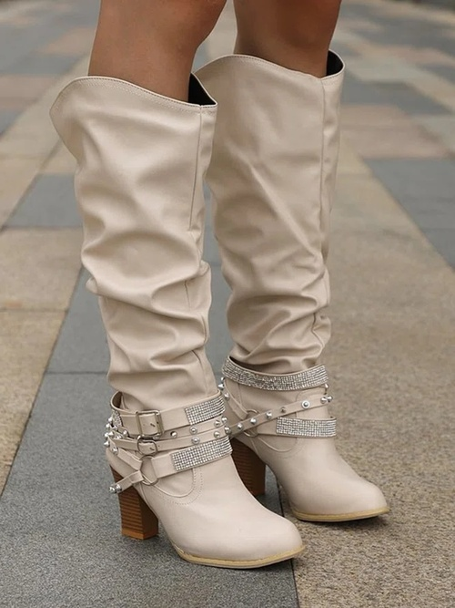 Vintage Rhinestone Rivet Belt Buckle Knight Boots