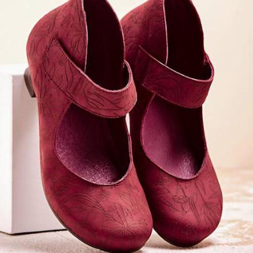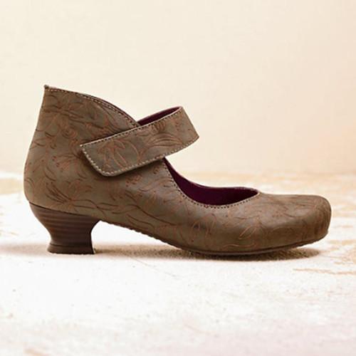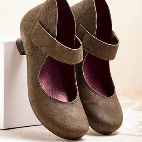 Vintage Women Square Toe Cross Tie Mid Heel Flower Print Sandal