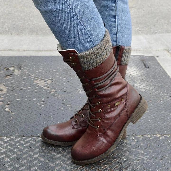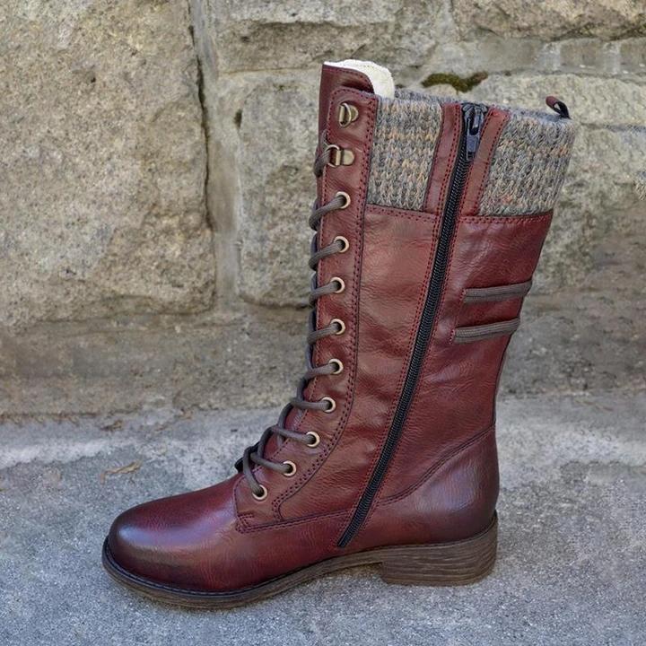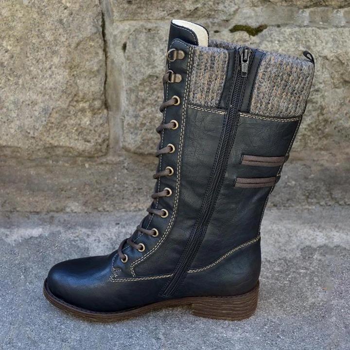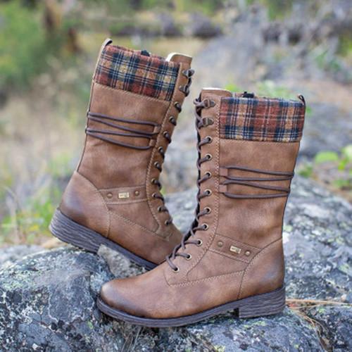 Warm Lining Splicing Non Slip Zipper Casual Flat Winter Ankle Boots