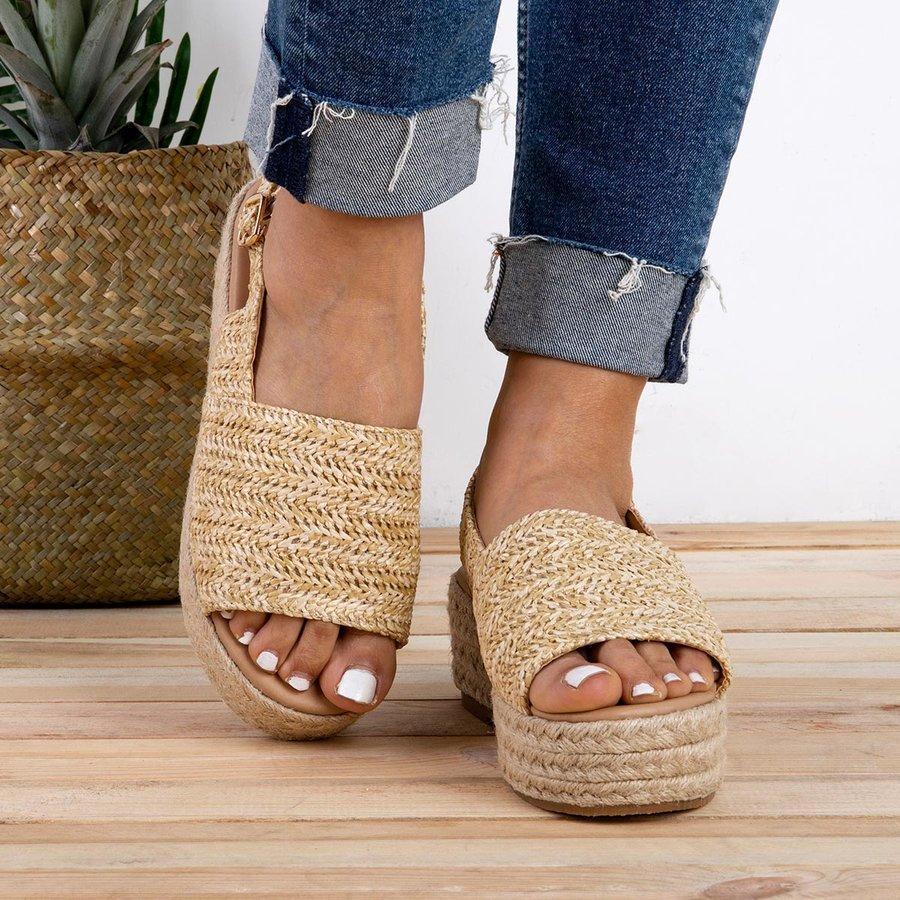 Weaving Espadrille Platform Sandals Summer Peep Toe Sandals