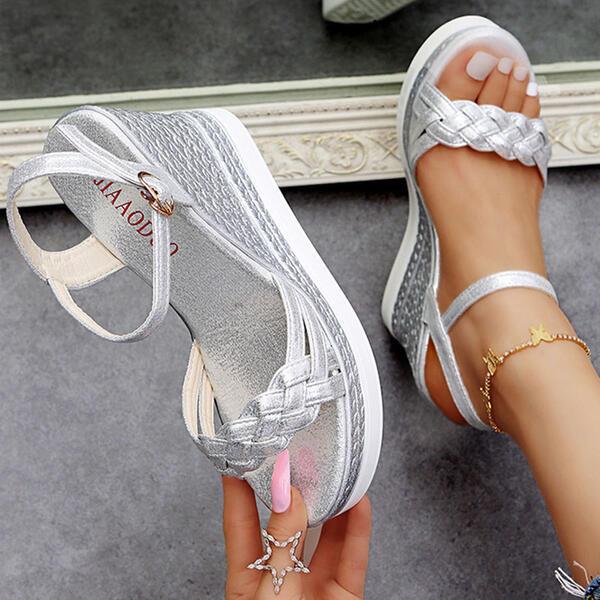 Wedge Heel Sandals Platform Wedges Peep Toe Heels With Buckle Braided Strap Solid Color shoes