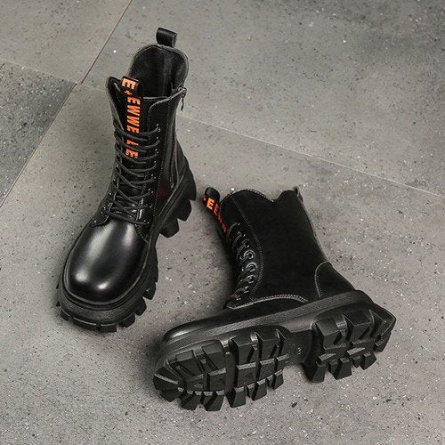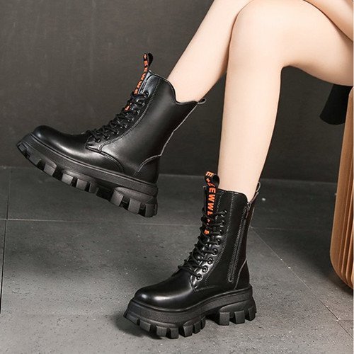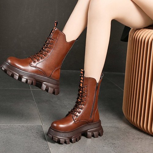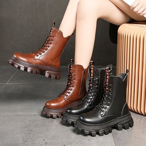 Winter Shoes Women Boots Round Toe Flats Black & Brown Leather